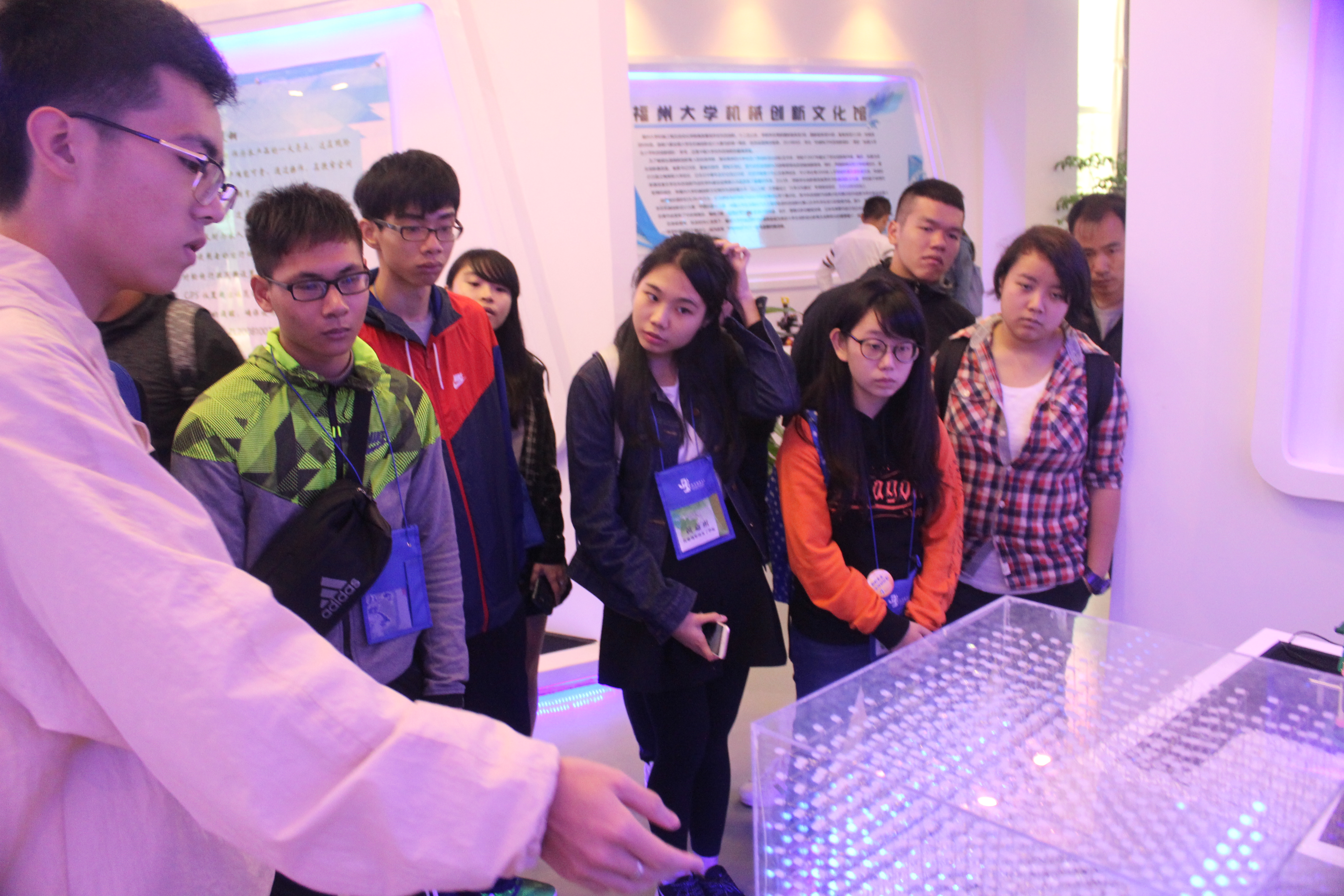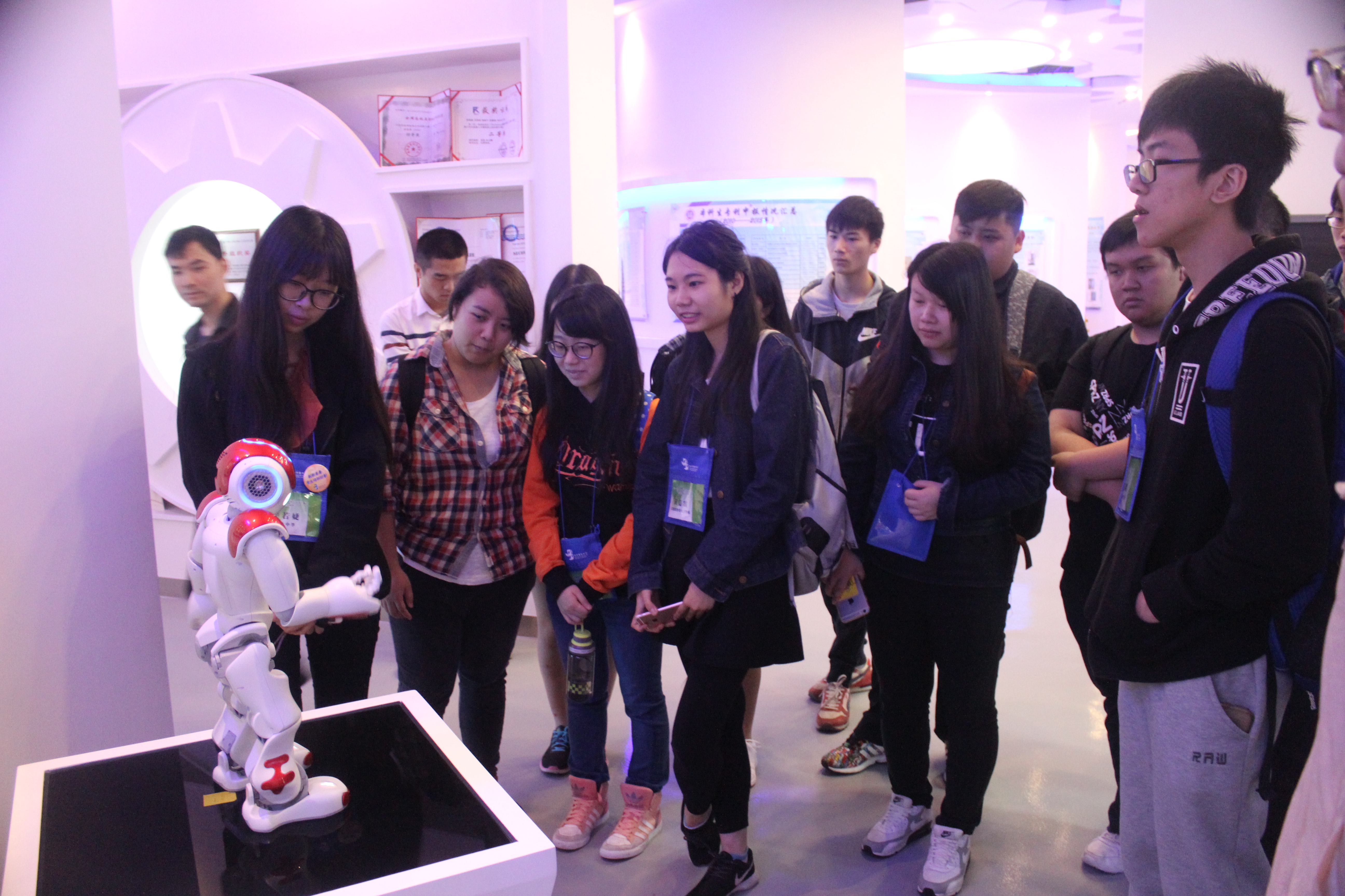 4月27日,澳门中科创客学员到达我校,在91在线14级辅导员滕培秀老师的陪同下参观了91在线的科技创新文化馆。