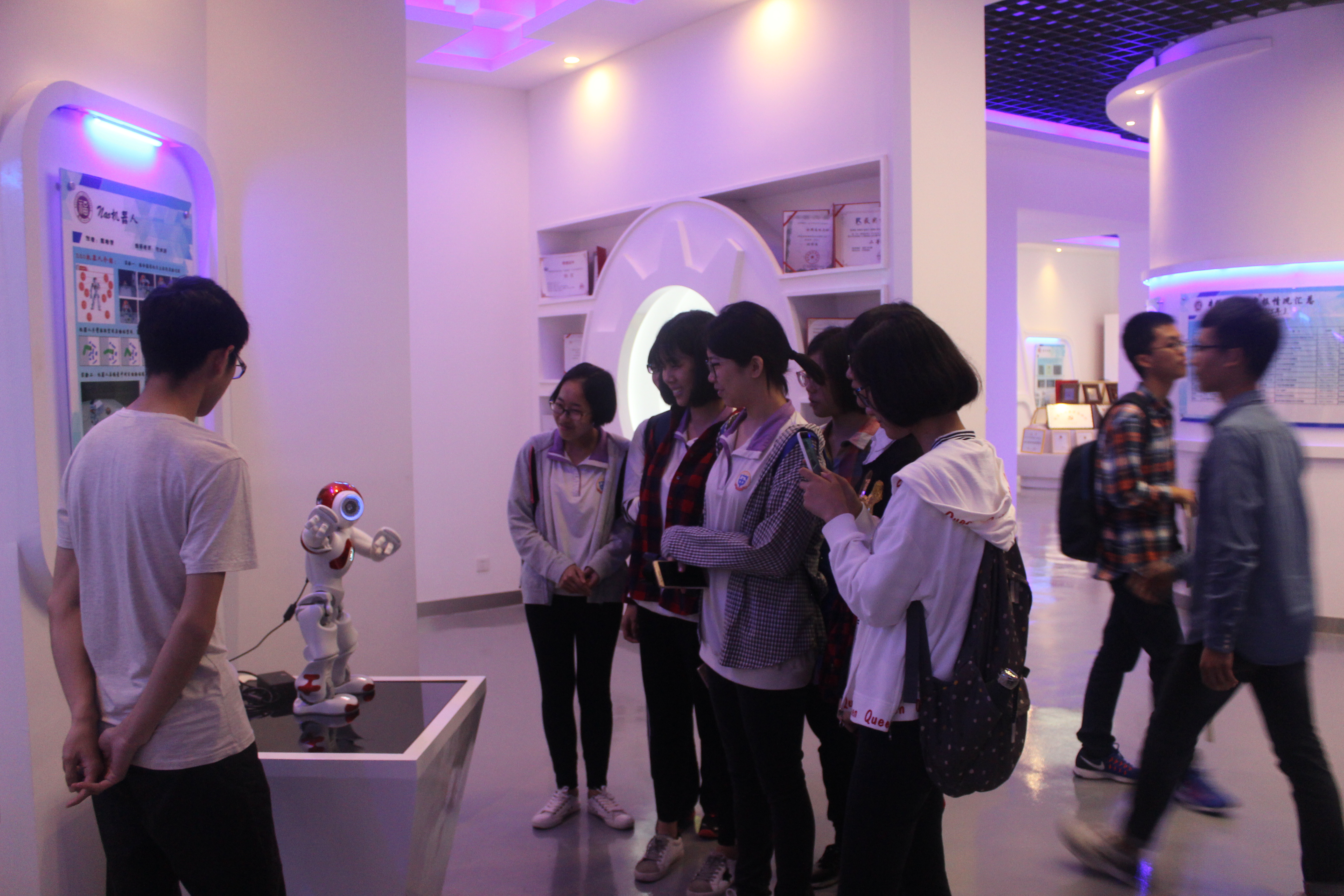 5月3日,福州八中学生到达91在线科技创新文化馆参观,并由91在线学生进行了讲解。福州八中学生依次参观了机器人、赛车、3D打印机、爬楼机、机械臂、立体车库等多个研究项目,对91在线的研究成果深感敬佩,并表示希望有机会再来参观学习。