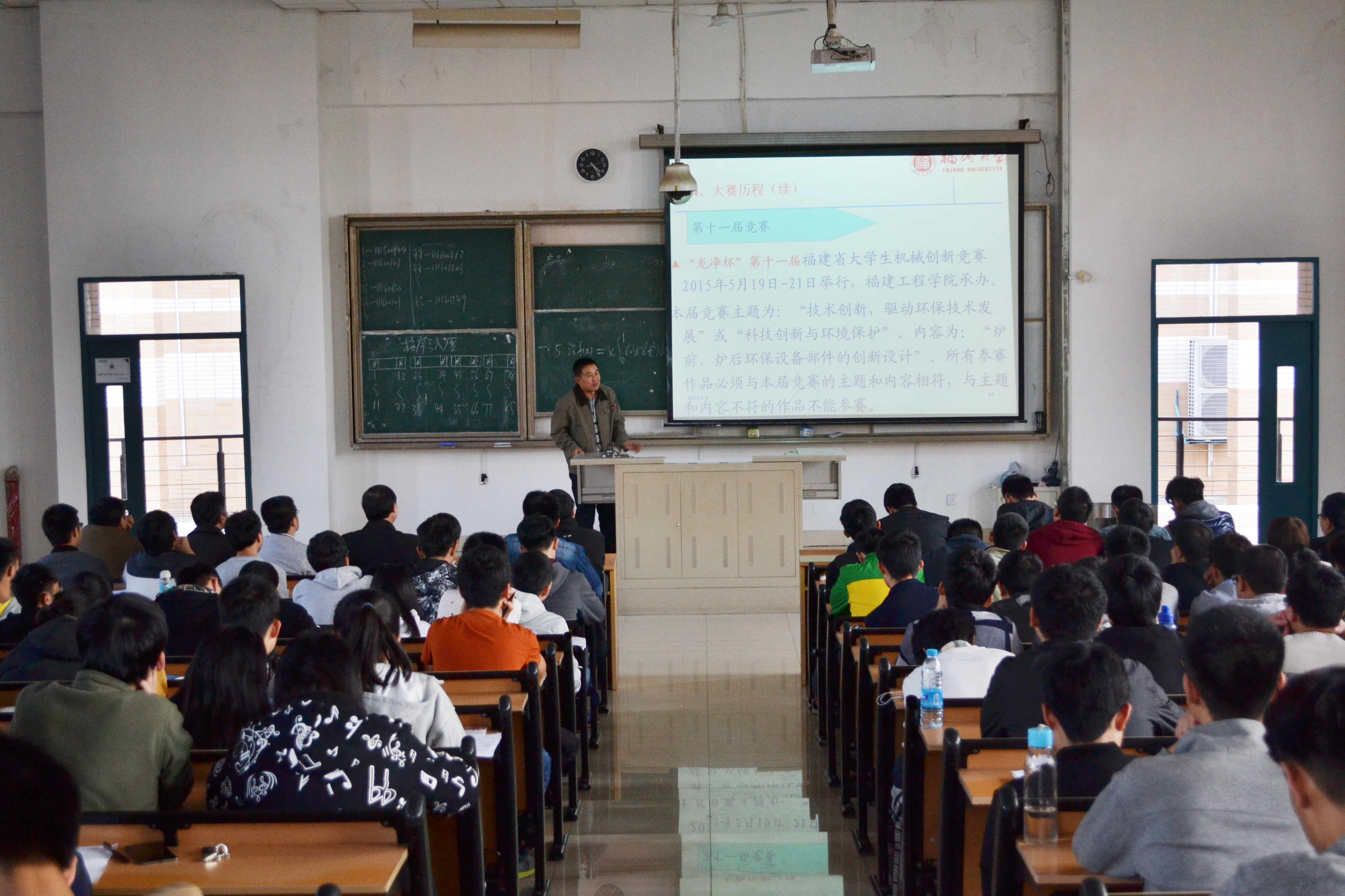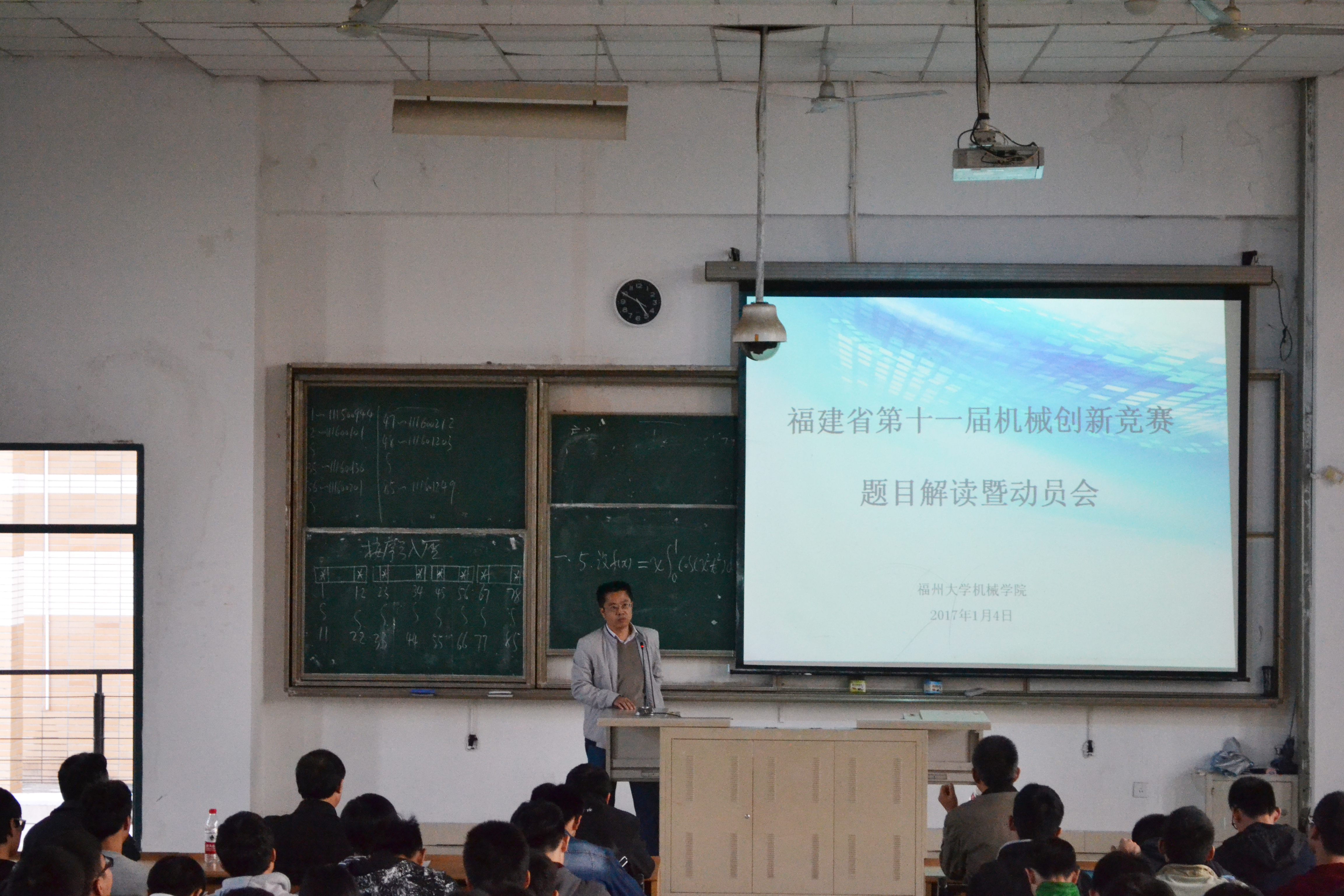 在东3-100举办了福建省第十一届机械创新竞赛题目解读暨动员会,莅临本次活动的嘉宾有刘晓敏教授、陈绍春教授、朱光宇教授、蓝兆辉教授、蔡英杰副教授、薛丁琪老师、罗君扬老师、陈宗寿老师、唐福官老师、黄敏纯老师、团委副书记刘旭莹老师、各年级辅导员以及91在线