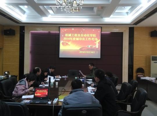 学工组全体专、兼职辅导员共7人依次在考评中详细介绍了自己一年来的在大学生思想政治教育、学生日常管理、大学生心理健康教育、大学生就业指导、大学生资助管理等方面的具体工作情况,并对自己一年来在德、能、勤、绩、廉五方面的表现进行了总结。在场的学院党政领导、教师代表根据实际工作情况,对每一个辅导员进行了现场评分。