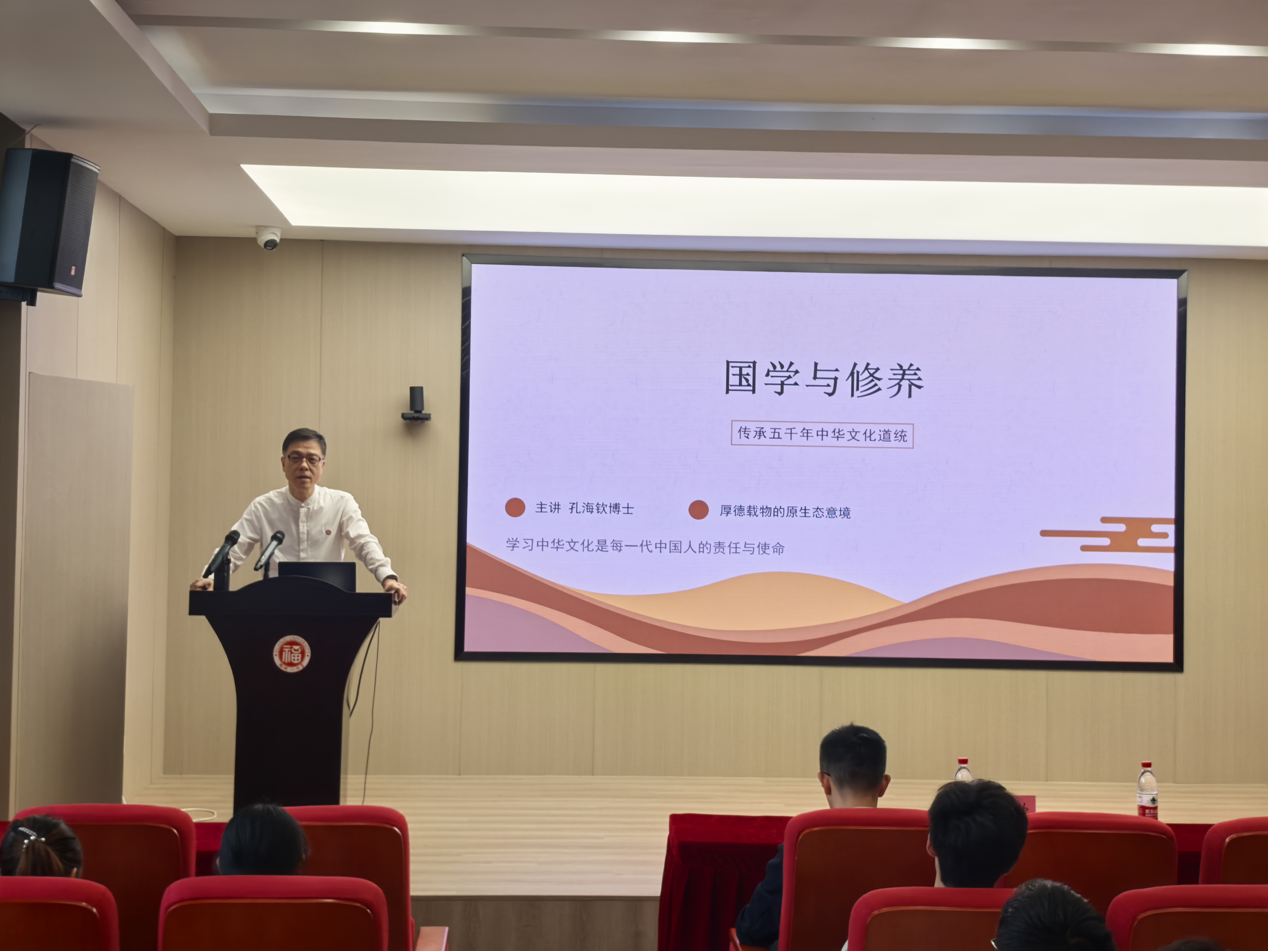 讲座伊始,孔海钦从国学的定义与内涵切入,指出国学即中国人的君子学问,涵盖诸子百家、四书五经等丰富内容,是道德与智慧的结晶,体现着中华文化的核心价值。他深入阐释了“仁、义、礼、智、信”等核心理念对个人修养的深远影响,强调学习中华文化是每一代中国人的责任与使命。