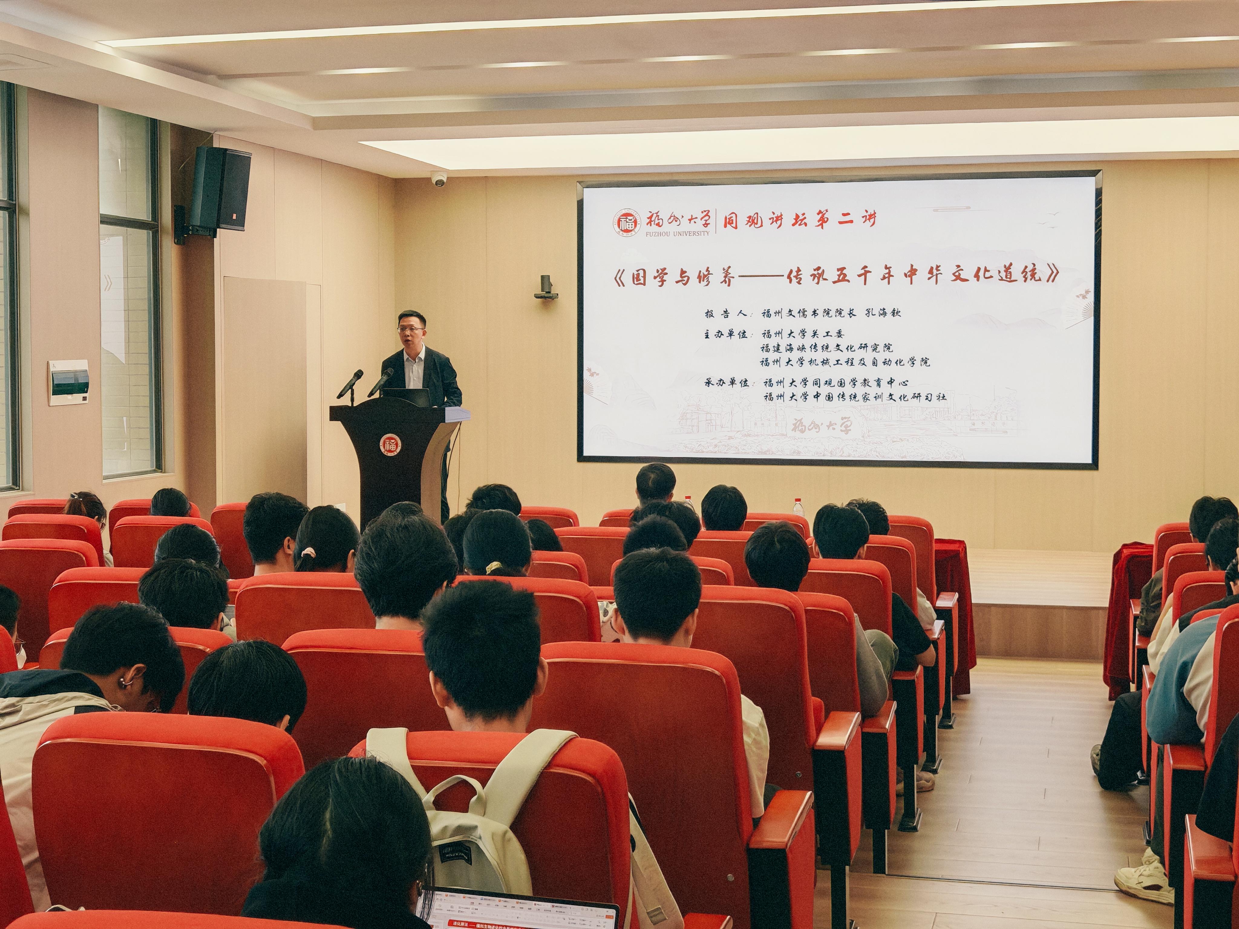 中国文化研究所副所长孔海钦应邀作题为《国学与修养》的专题讲座。学院党委副书记谢武主持讲座,100余名学生到场聆听。