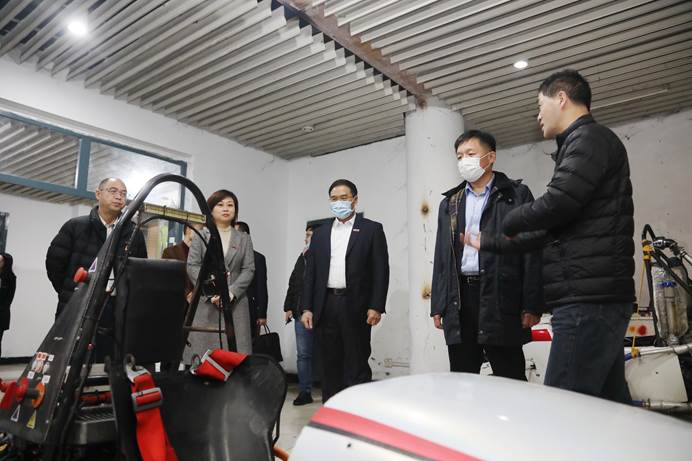 黄大伟部长一行首先在大学生“小平科技创新团队”方程式赛车集训基地观看了第四代无人车动态路跑演示,参观了车队加工实践车间、荣誉展示墙和飞驰人生工作坊成果展等。车队指导老师彭育辉教授向黄部长一行详细介绍了车队近10年的发展情况。黄大伟部长充分认可91在线