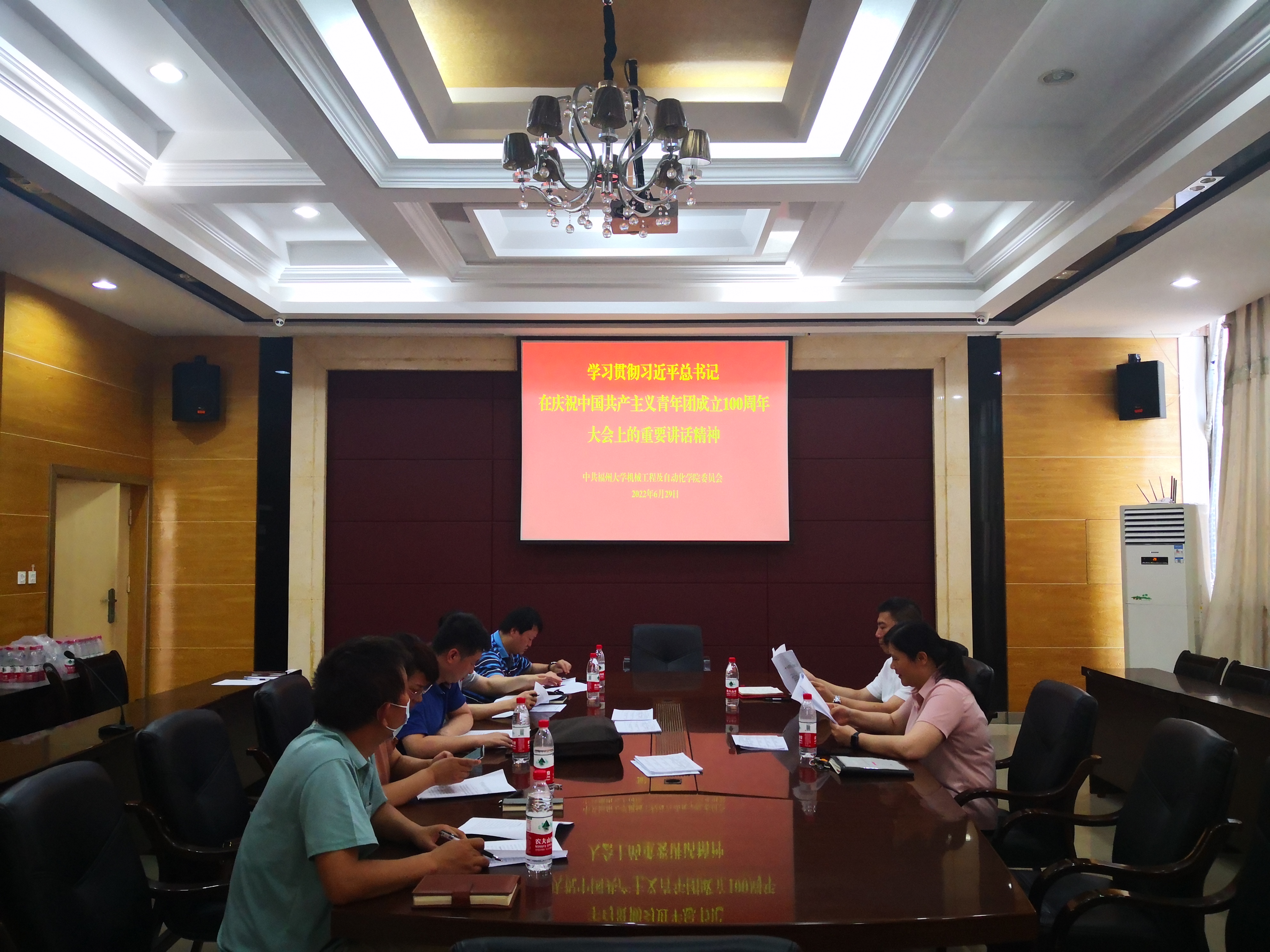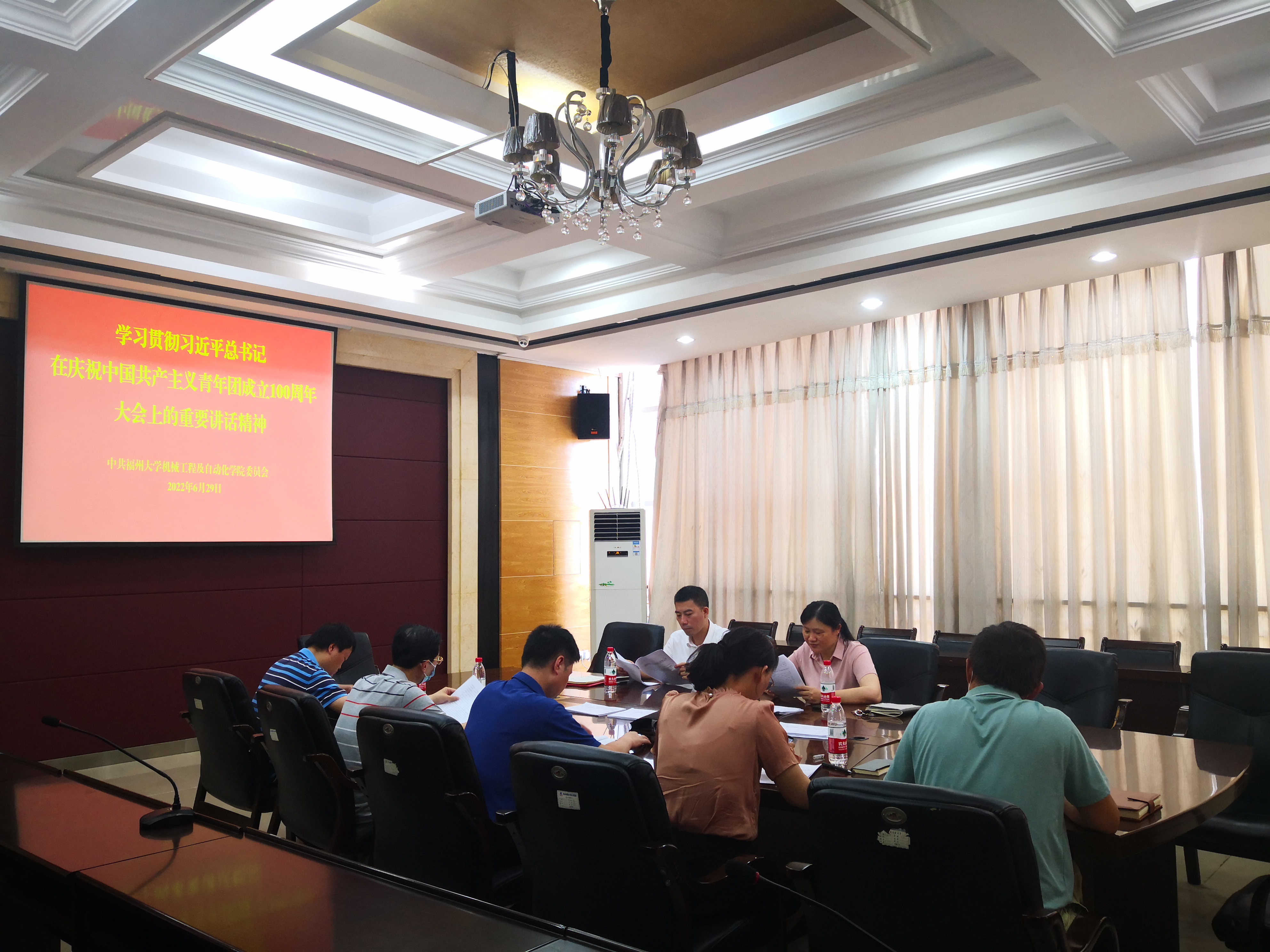 6月29日上午,91在线在机械楼南401会议室举办党委理论中心组(扩大)学习会认真学习习近平总书记在庆祝中国共产主义青年团成立100周年大会上重要讲话精神。全体党委委员和思想政治辅导员参加了学习会。