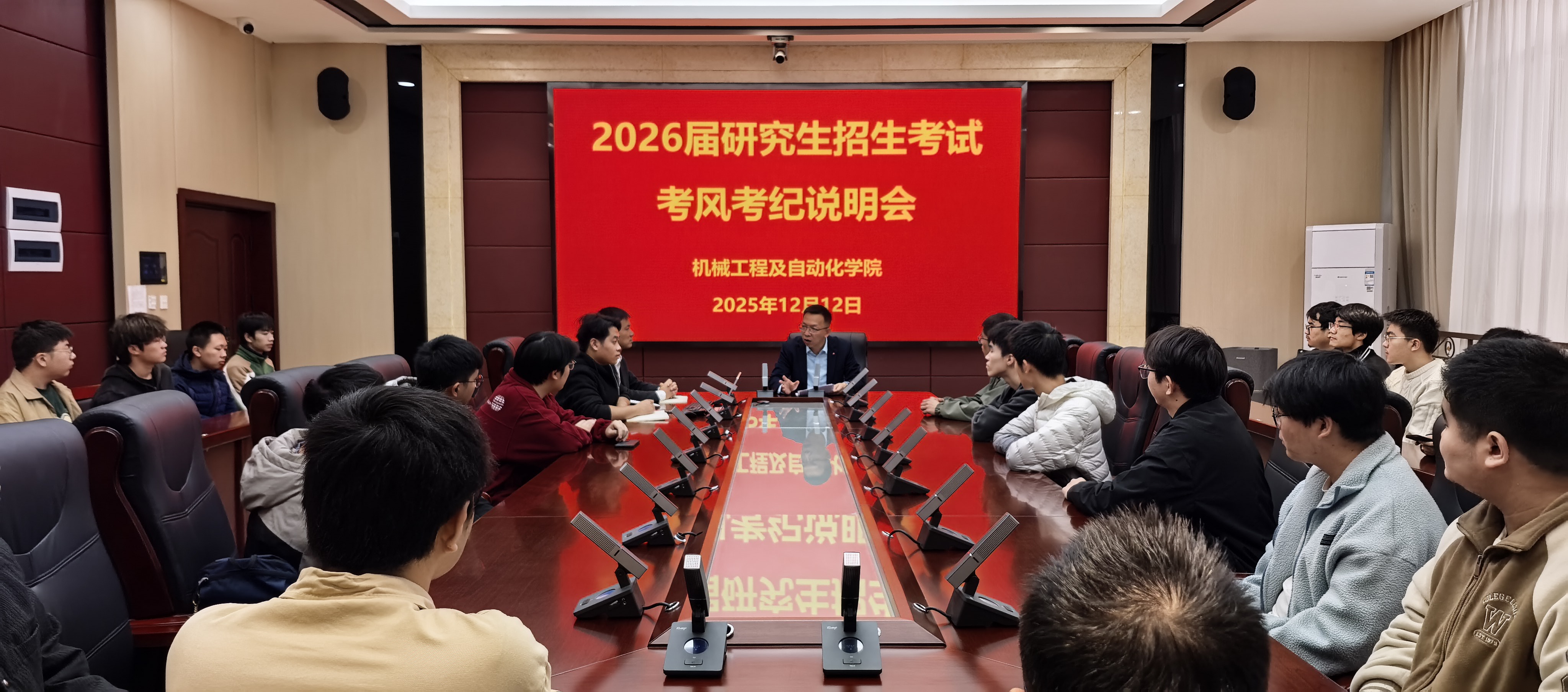 为凝聚冲刺力量、严明考试纪律,12月12日,学院于机南401会议室开展2026届考研冲刺鼓劲会,以慰问强信心、以关怀暖人心、以纪律守初心,为学子研途冲刺保驾护航。学院党委书记陈伟民,负责学院行政全面工作副院长任志英,党委副书记兼纪委书记谢武出席会议,毕业班辅导员、2026届考研学生参加活动。