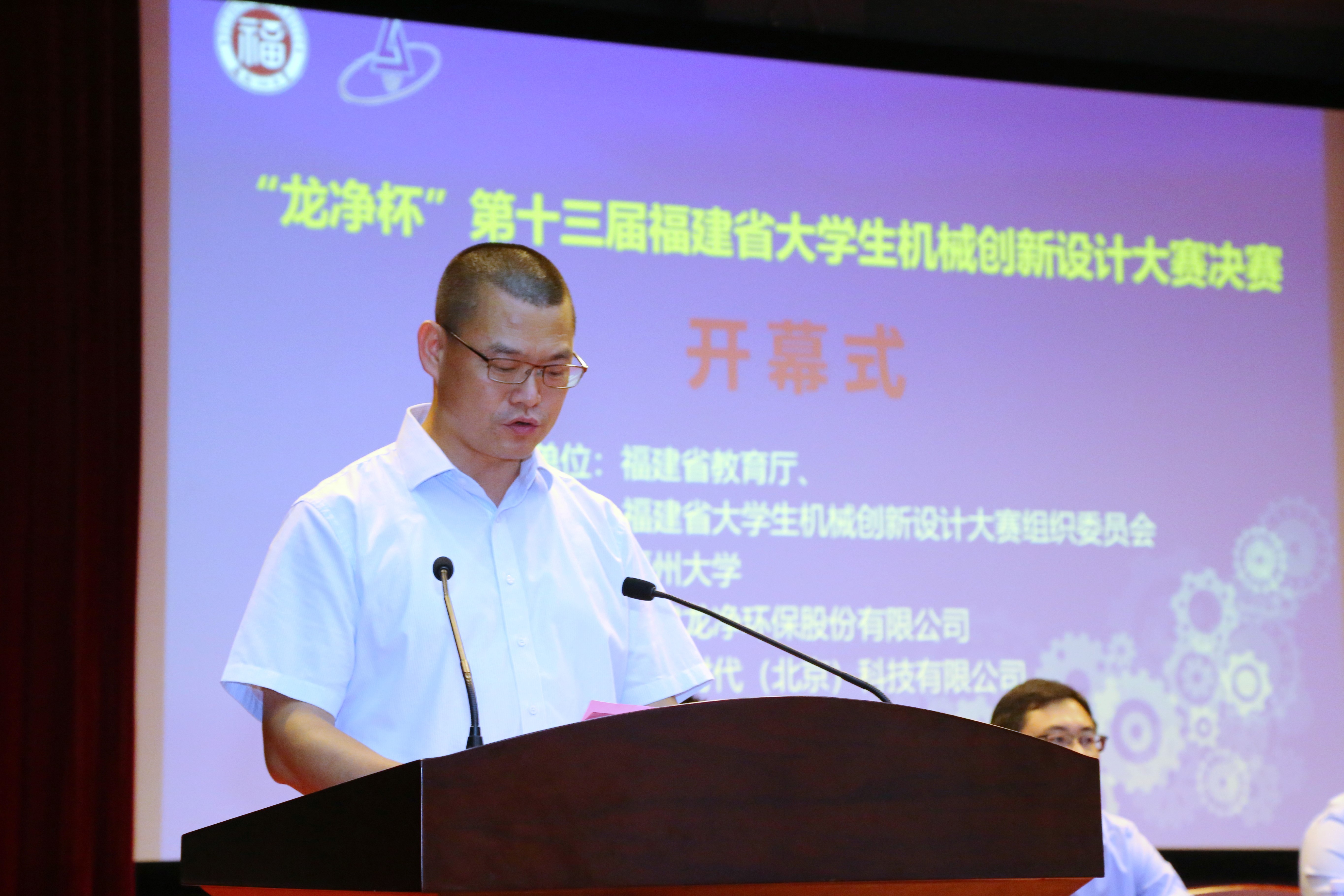 开幕式上,林生副书记代表学校致欢迎辞,对主办方的信任表示感谢,对领导嘉宾、评审专家和参赛师生的到来表达欢迎;强调了创新的重要性并希望广大学生充分利用这个创新实践平台,相互学习,交流经验,共同为推进新福建建设贡献智慧。福建龙净环保股份有限公司、机器时代科技有限公司代表分别介绍了公司概况、对所有参赛选手给予鼓励和预祝他们取得好成绩。