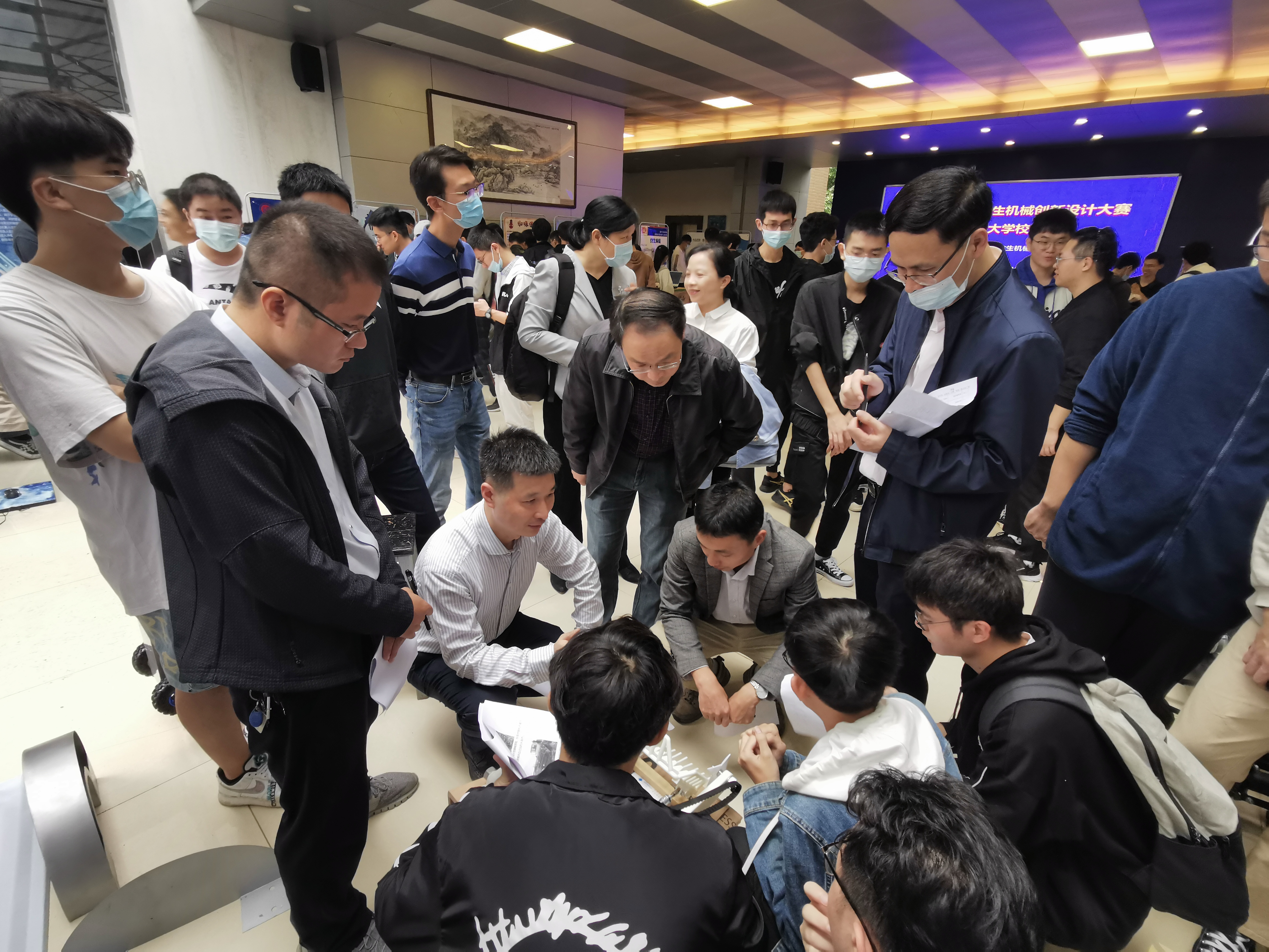 一楼大厅成功举办。学院党委副书记(主持工作)叶青、院长钟舜聪、副院长张俊莅临现场指导,机设系、机电系16位评委老师参加评审。30个参赛队伍通过作品答辩、实物演示等环节向在场的师生展示了其设计作品的创新性和实用性。
