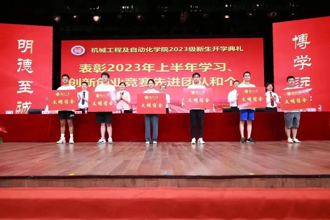 党委常委、副校长林键研究员,1979级优秀院友、福耀工程玻璃销售公司董事长石乃珊,学院党委书记叶青,学院院长、校人事处处长钟舜聪教授,学院副院长张俊教授,院长助理宋泽云高级实验师、任志英教授、王冰教授,材料成型系主任邓将华教授,车辆工程系主任林歆悠教授,学院党委办公室、学院团委、学院教学办公室有关负责同志,全体专职辅导员、引进生兼职辅导员,本科各年级班主任以及全体2023级新生参加本次开学典礼。典礼由学院党委副书记兼纪委书记孙鋆主持。