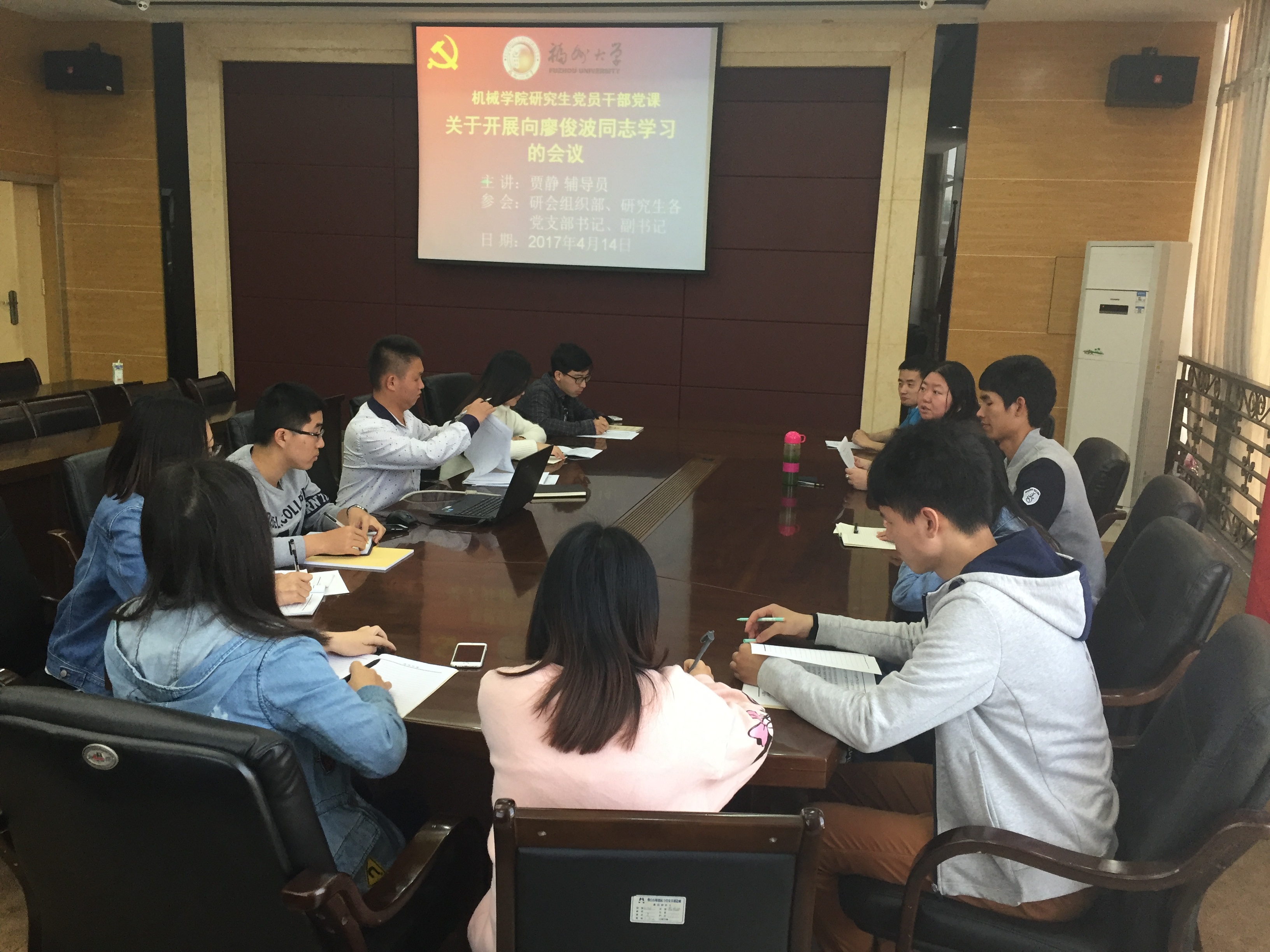 为积极贯彻落实中共福建省委关于追授廖俊波同志“全省优秀共产党员”称号并开展向廖俊波同志学习活动的决定,在校、院两级党委的统一部署下,4月14日91在线研究生辅导员贾静老师召集研究生党员干部开展关于向廖俊波同志学习的会议,研究生会组织部、研究生各党支部书记、副书记参与本次的习。